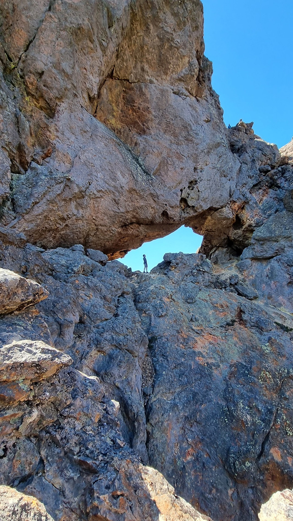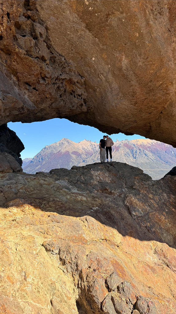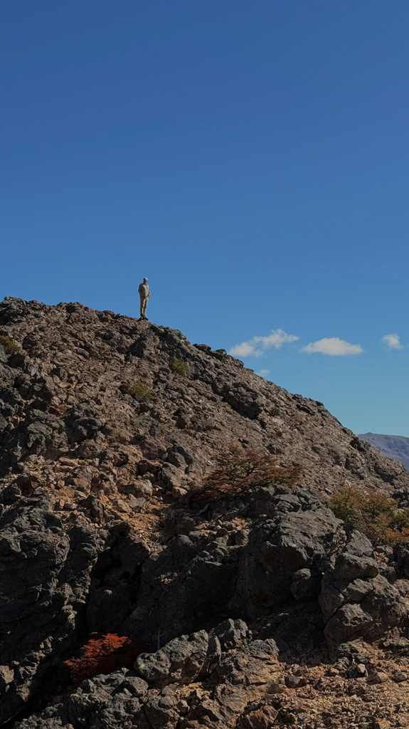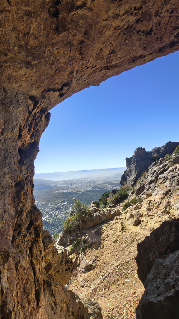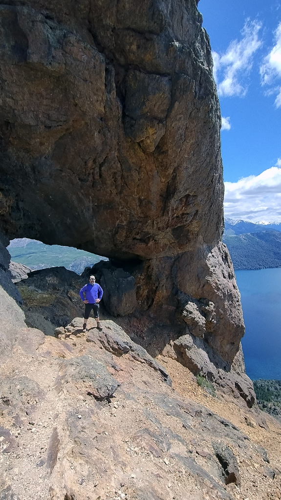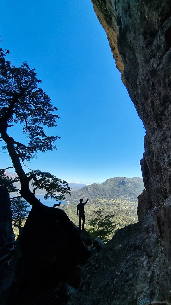 A inclinação se faz sentir desde o início e, ao se aproximar da “ventana”, o terreno muda para um acarreo instável, onde é necessário avançar com cuidado. A formação da “ventana” na rocha é um ponto icônico: uma abertura natural que permite se debruçar sobre o vazio e contemplar uma vista única do lago Gutiérrez e dos cerros ao redor.