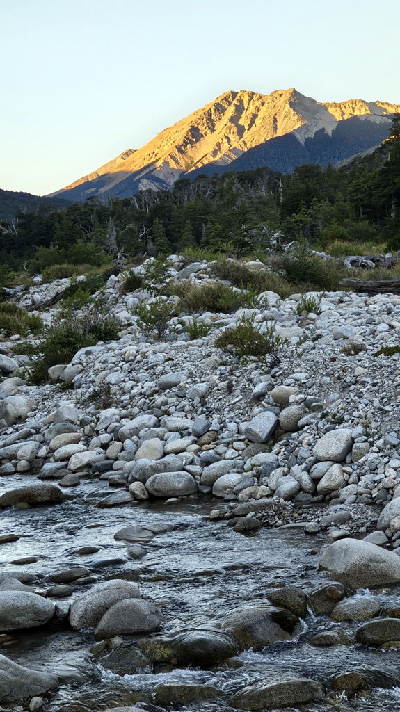 El descenso nos permite vivir otra dimensión del trekking: la luz cambia, las sombras se alargan, y los detalles que pasamos por alto en la subida se revelan ahora con más fuerza. Se puede detenerse junto al arroyo para descansar, contemplar sus prístinas aguas y sentir la textura de las piedras grises bajo las manos, mientras el entorno sigue envolviéndonos con su calma.