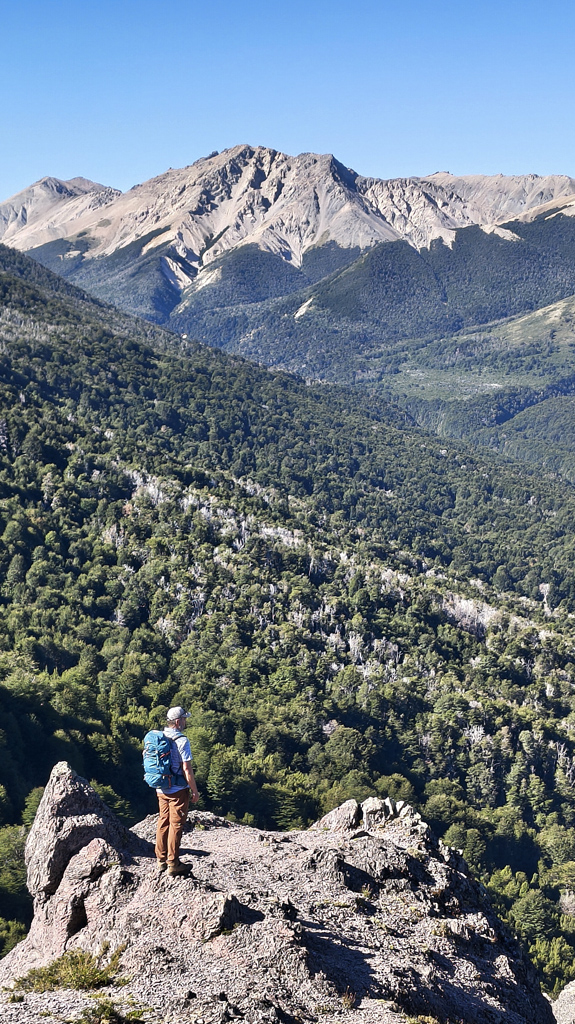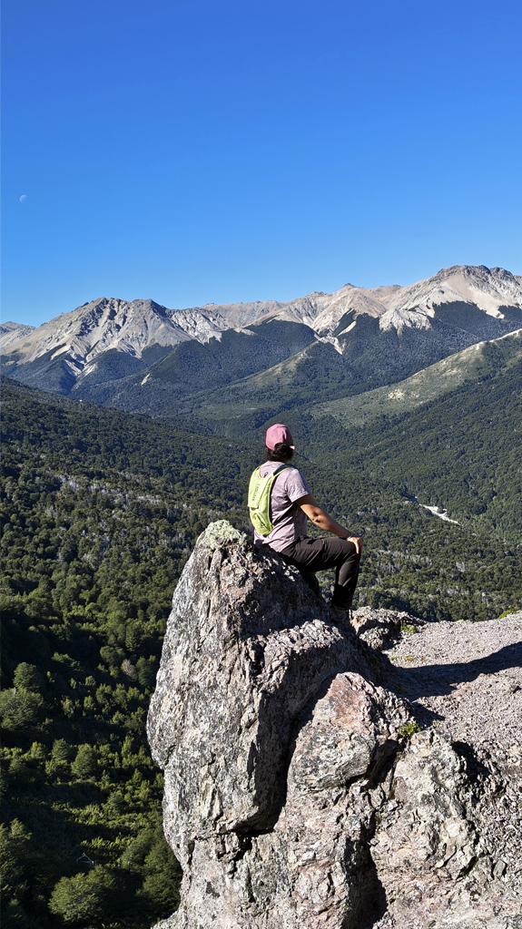 Pronto, la senda se interna en un bosque de coihues altos y frondosos, que nos cubren con su sombra y generan una sensación de refugio. Más arriba, los cipreses cordilleranos se mezclan con las lengas, marcando la transición hacia el tramo final, donde la altura revela la dimensión completa del bosque patagónico y nos prepara para la emoción de la cumbre.