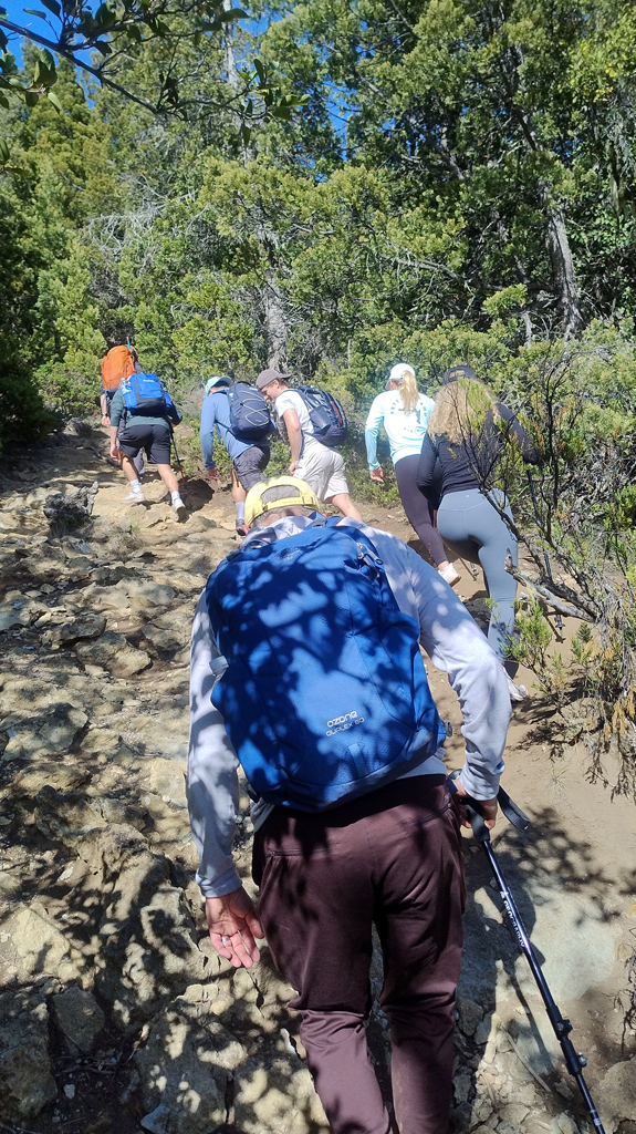 Entraremos nuevamente al bosque hasta alcanzar un col (un paso entre 2 montañas o valles) que será un lugar de descanso antes de atacar la segunda cumbre. En el ascenso final al Cerro Goye volveremos a salir del bosque y volverá a ser un sendero de alta montaña con un desnivel moderado y amplios panoramas del Nahuel Huapi y del Tronador.