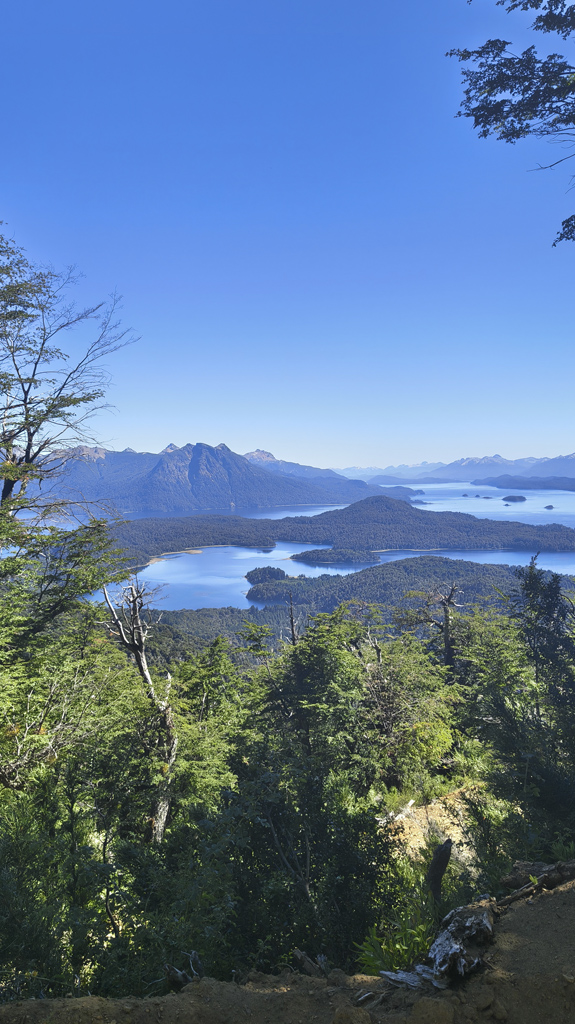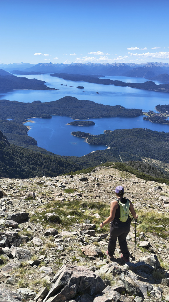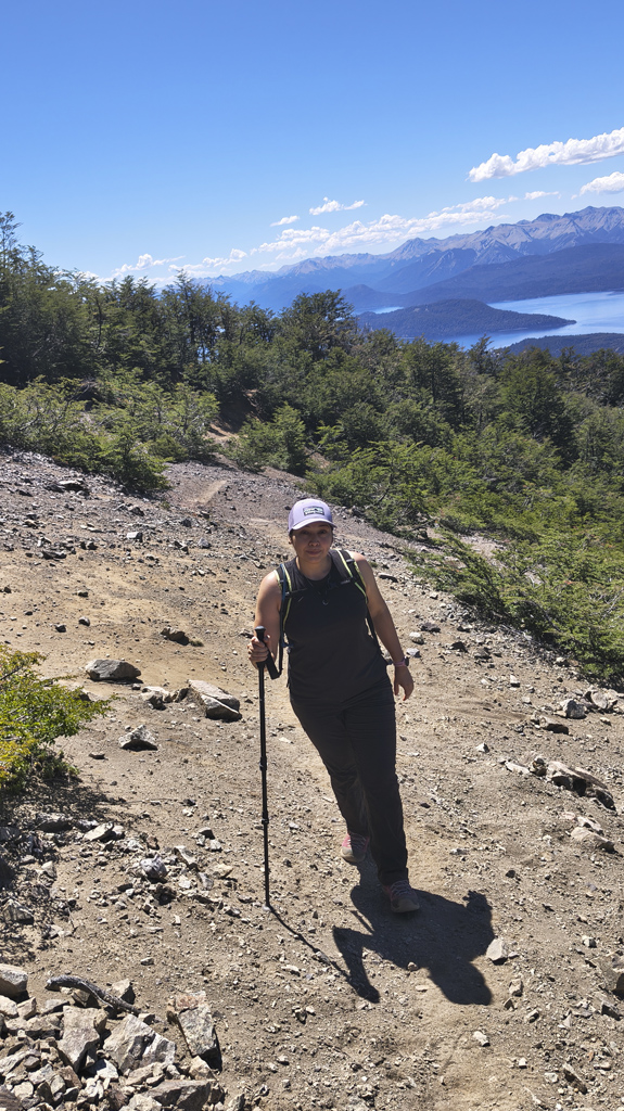 El sendero sigue descendiendo, alternando bosque, claros y pequeñas rocas que requieren atención. Cada curva regala nuevas vistas del Lago Nahuel Huapi, la Isla Victoria y los cerros circundantes. La sensación de inmersión plena en la montaña permanece hasta regresar al Canopy, completando la experiencia circular. El paisaje cambia a cada paso, recordándonos la riqueza de la Patagonia andina.