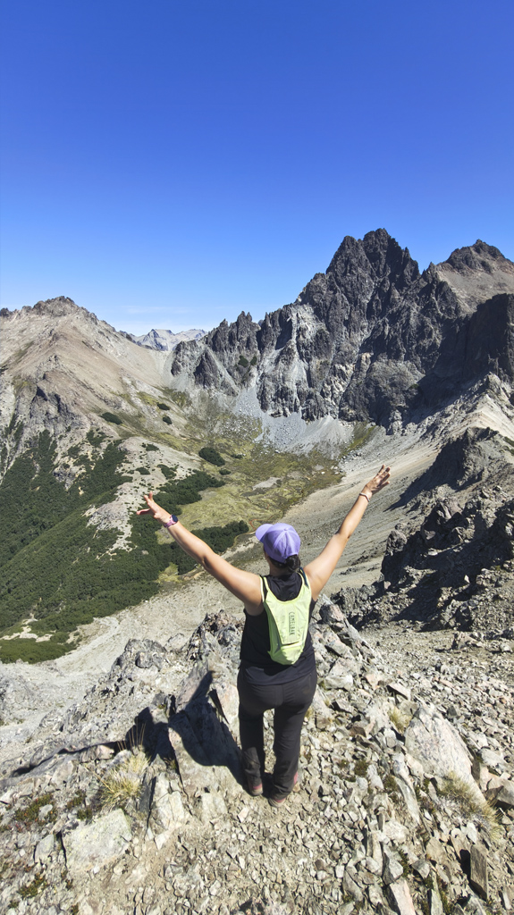 El refugio Extremo Encantado aparece como un primer hito en la ruta. Rodeado de bosque virgen, invita a detenerse y contemplar el valle que se despliega a nuestros pies. El Lago Nahuel Huapi refleja la luz del día y la Isla Victoria y la Península de Quetrihué emergen en el horizonte. Es un lugar donde la montaña nos recuerda que cada paso es tan valioso como la meta misma.