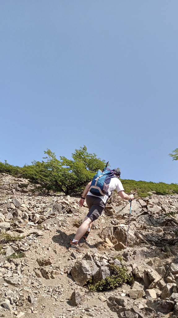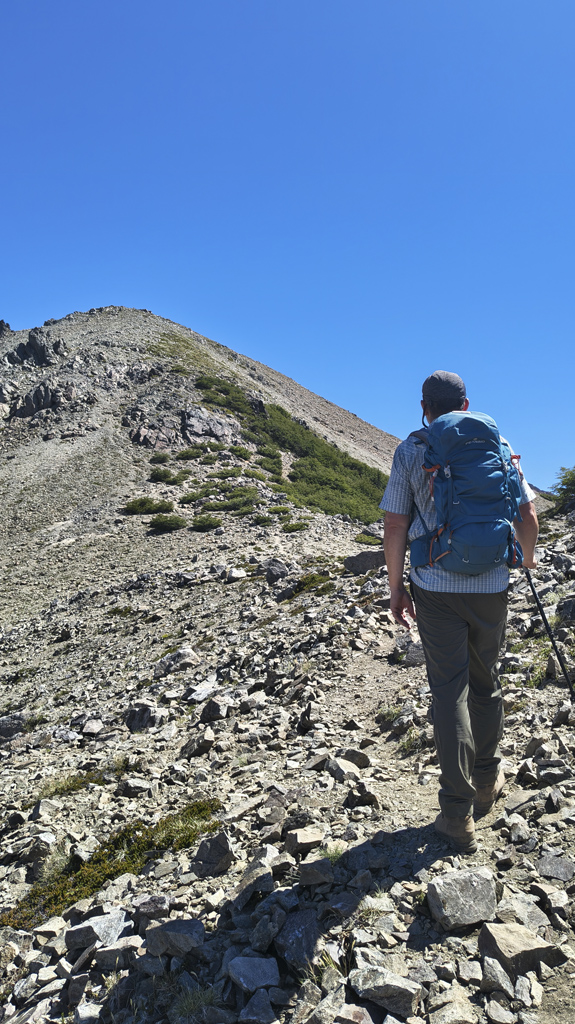 A medida que avanzamos, el terreno se vuelve más rocoso y el bosque se abre gradualmente, dejando paso a matorrales de lenga. Ingresamos al relieve alto andino, donde la vegetación escasea y las rocas toman protagonismo, mostrando la montaña en su forma más auténtica. Cada paso regala vistas que se expanden hacia cerros interminables y lagos que reflejan el cielo. Detalles que solo se descubren caminando por senderos escondidos y poco transitados.